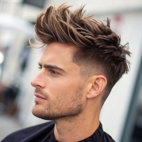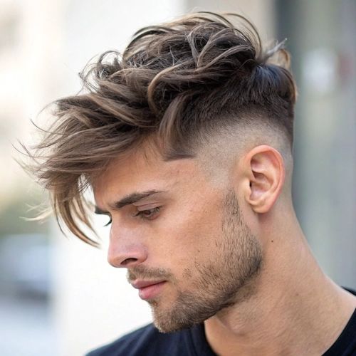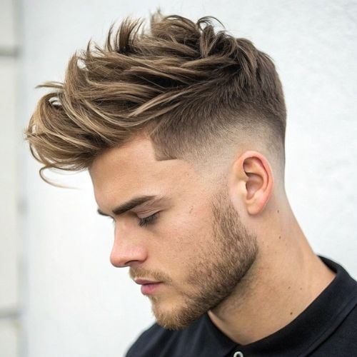 This haircut has a sharp line with faded sides and styled spiky pieces on top. It gives you a fun vibe that’s perfect for men who want to stand out.